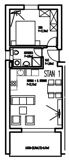 P1001 | STAN | 40.41 m2 | 8.58 m2 (L) | 46.84 m2 | 1 | 1 | 159.256 € | Pogledaj tlocrt |
