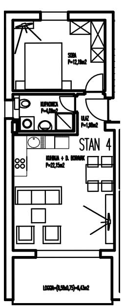 P3004 | STAN | 40.41 m2 | 8.58 m2 (L) | 46.84 m2 | 1 | 2 | 159.256 € | Pogledaj tlocrt |