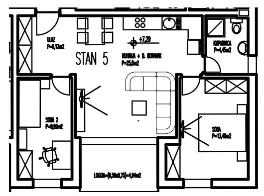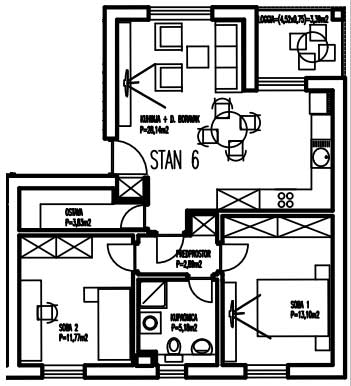 P3005 | STAN | 58.90 m2 | 6.59 m2 (L) | 63.84 m2 | 2 | 2 | 217.056 € | Pogledaj tlocrt |