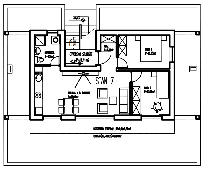 P1007 | STAN | 54.29 m2 | 11.68 (NT) + 80.33 m2 (T) | 80.21 m2 | 2 | NADGRAĐE | 272.714 € | Pogledaj tlocrt |