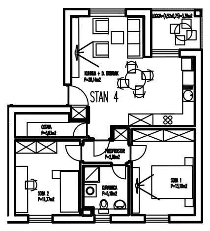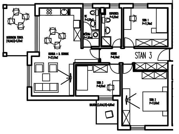 P2003 | STAN | 84.35 m2 | 10.50 (NT) + 3.42 m2 (B) | / | 90.45 m2 | 3 | 1 | 307.530 € | Pogledaj tlocrt |