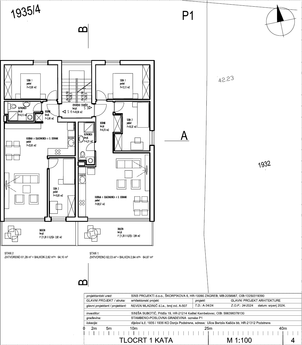 P1004 | STAN | 61.28 m2 | 11.28 m2 (B) | / | 64.10 m2 | 2 | 1. | 224.350 € | |