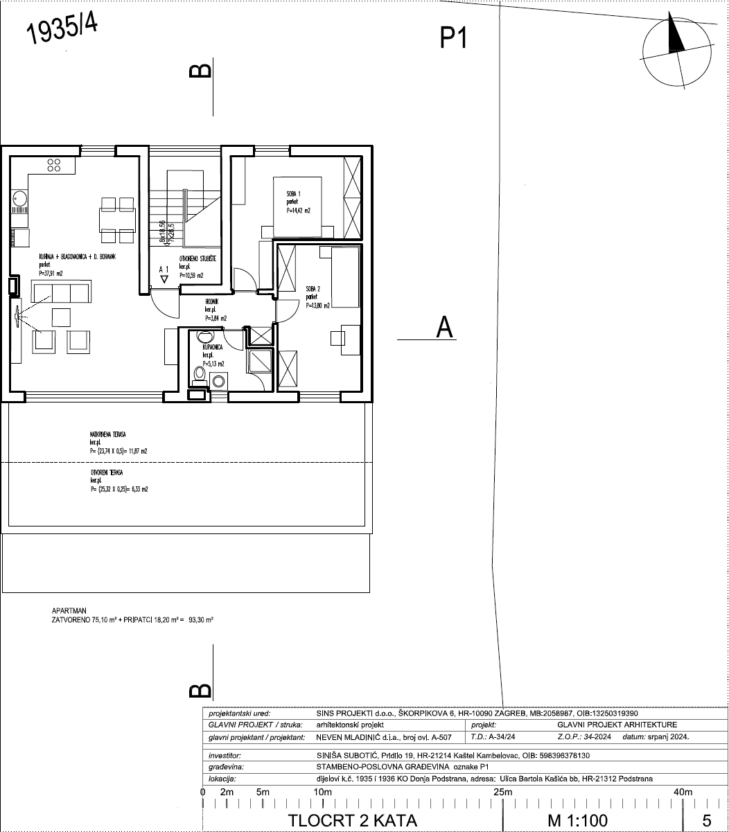 P1005 | TURISTIČKI APARTMAN | 75.10 m2 | 23.74 m2 (NT) + 25.32 m2 (T) | / | 93.30 m2 | 2 | 2. | 326.550 € |