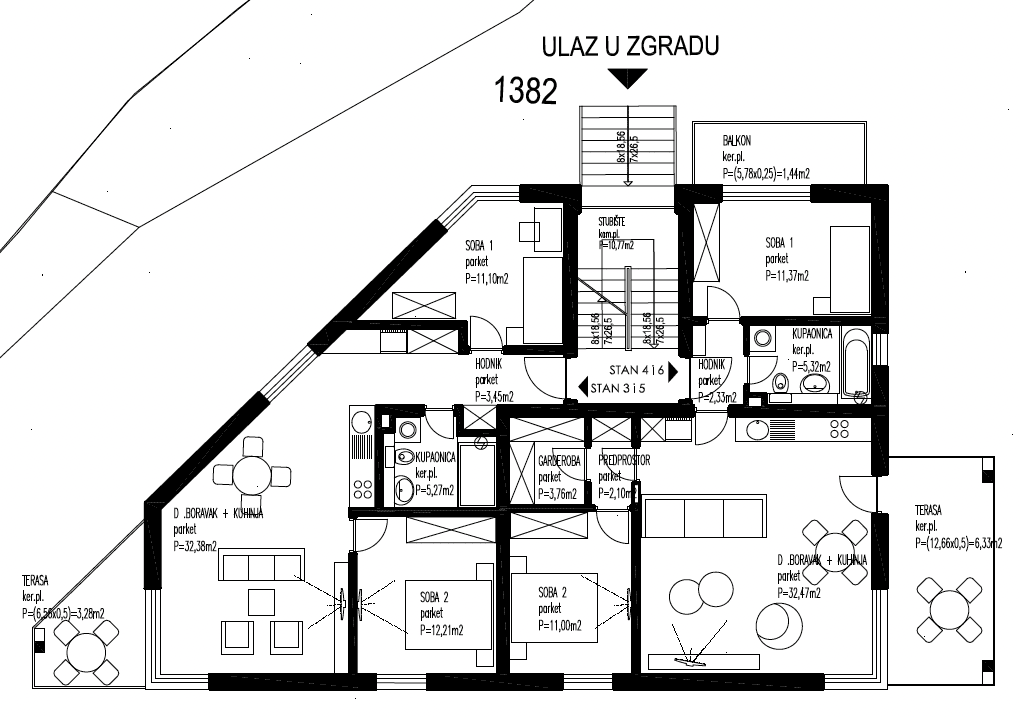 K005 | STAN | 64.41 m2 | 6.56 m2 (T) | 67.69 m2 | 2 | 2. | 257.222 € | Pogledaj tlocrt |