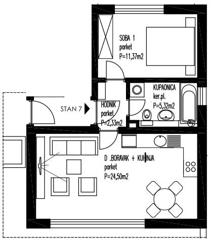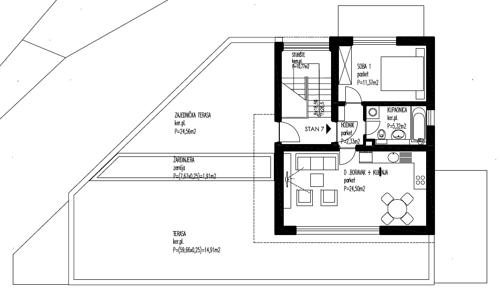K007 | STAN | 43.52 m2 | 59.66 m2 (T) + 7.67 m2 (Ž) | 60.34 m2 | 1 | NADGRAĐE | 229.292 € | Pogledaj tlocrt |