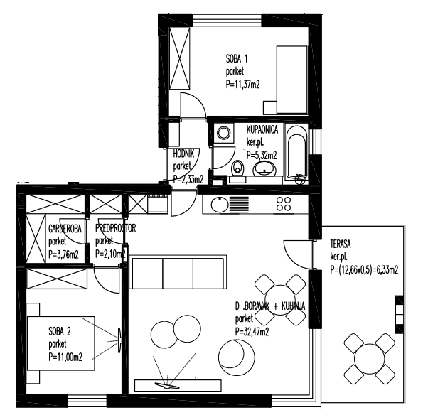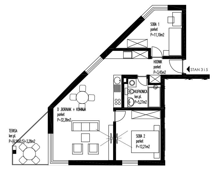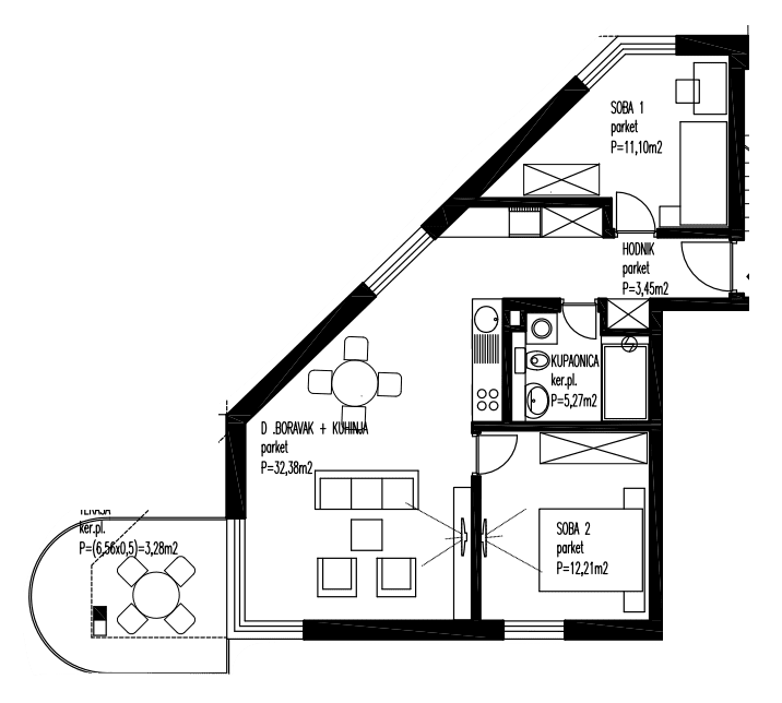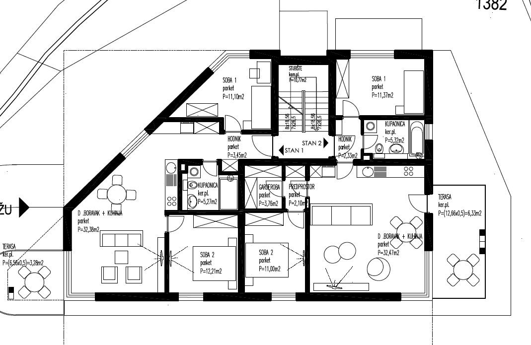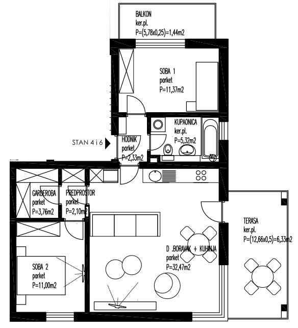 K006 | STAN | 68.35 m2 | 12.66 m2 (T) + 5.78 m2 (B) | 76.12 m2 | 2 | 2. | 289.256 € | Pogledaj tlocrt |